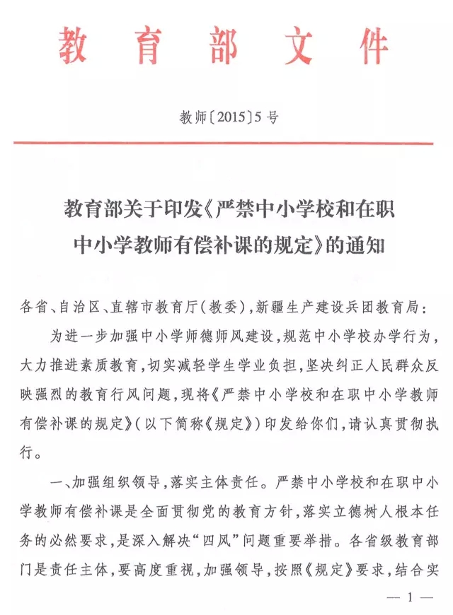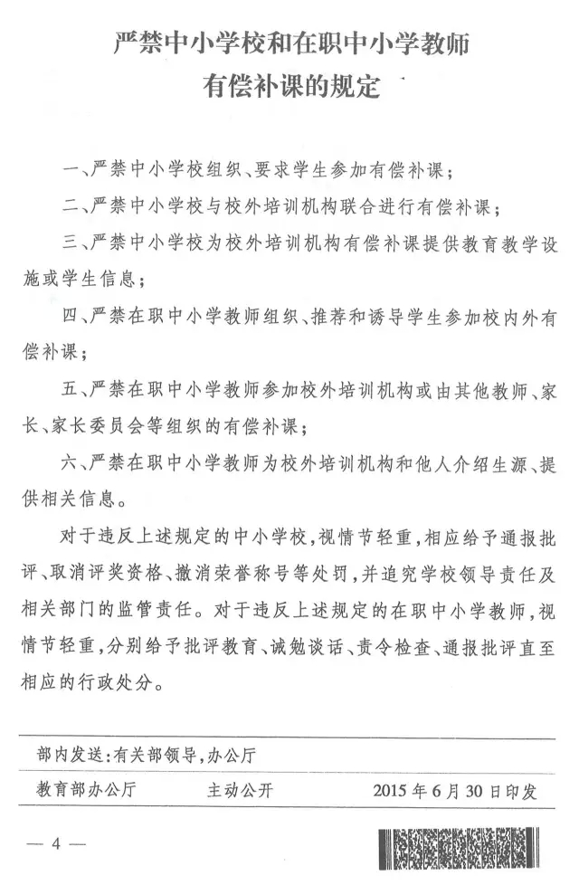 《严禁中小学校和在职中小学教师有偿补课的规定》通知(全文)